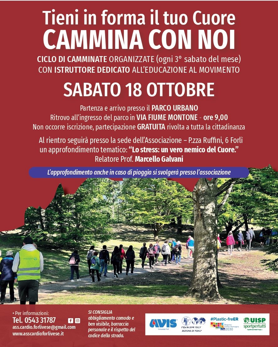 Leggi tuttoPronti per la nostra camminata mensile !!!!! Fondazione Cardiologica Myriam Zito Sacco con Associazione Cardiologica Forlivese ODV vi aspetta all’appuntamento di Sabato